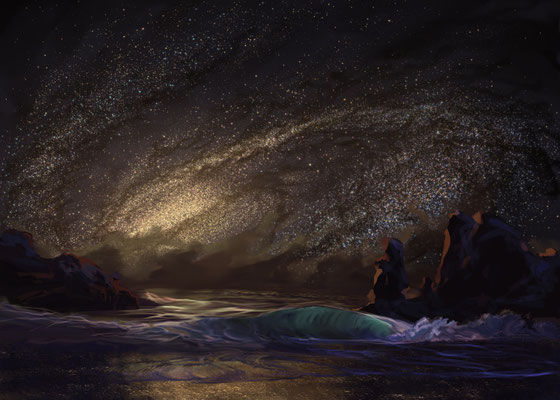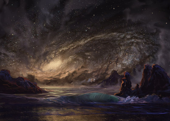 foggy horizon transiting into a spiral galaxy